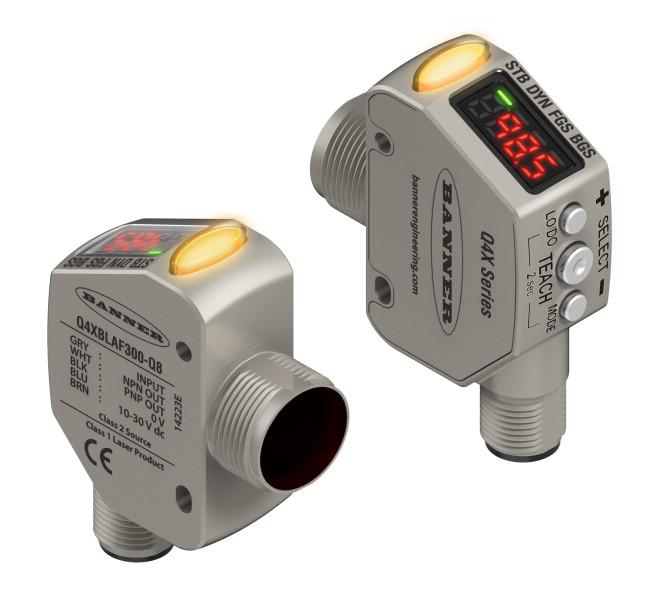 Q4X是美國(guó)邦納最新一代的多功能全金屬數(shù)顯激光測(cè)距傳感器。為各種困難的工業(yè)應(yīng)用提供高速,非接觸,可靠地檢測(cè)解決方案。Q4X同時(shí)提供了FGS前景抑制和BGS背景抑制功能。 它是名副其實(shí)的傳感器界的“鋼鐵俠”,達(dá)到IP69K防護(hù)等級(jí)的堅(jiān)固外殼, FDA級(jí)不銹鋼可抵抗機(jī)械沖擊、過(guò)度緊縮和極端振動(dòng);它還非常的多才多藝,在23-300毫米檢測(cè)距離內(nèi),能可靠檢測(cè)各種目標(biāo)顏色和材質(zhì)表面;而且它平易近人,傾斜的4位數(shù)字顯示、響應(yīng)快速清晰的按鈕都簡(jiǎn)化了用戶(hù)體驗(yàn)。